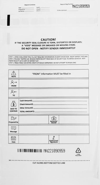 Bank Deposit Bag: Quick Business Deposit - QBD 9" x 12", 100 Pieces